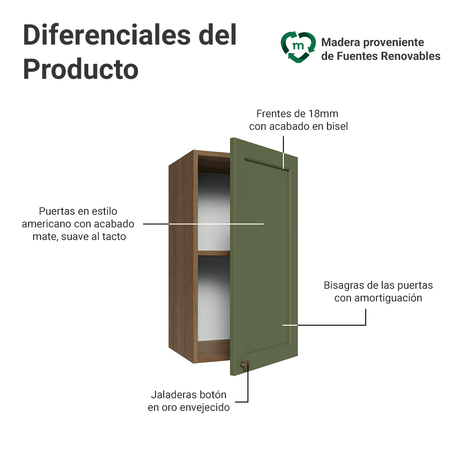 Alacena 35 cm 1 Puerta Marrón/Verde Vik Madesa