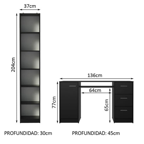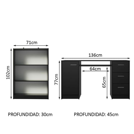 Escritorio Madesa Alaska y Librero Organizador 6906 Neg...
