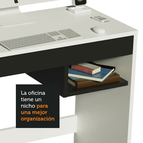 Escritorio Rubi con Tapa de Madera y 1 Nicho Blanco/Neg...