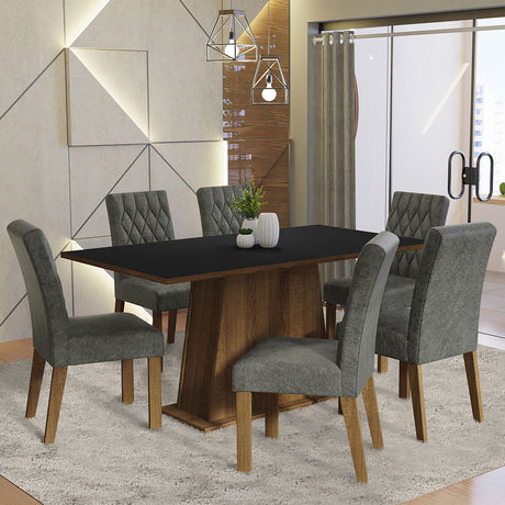 Juego de Comedor Mesa Tapa de Vidrio 6 Sillas Marrón/Gr...