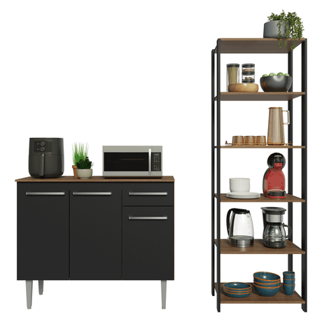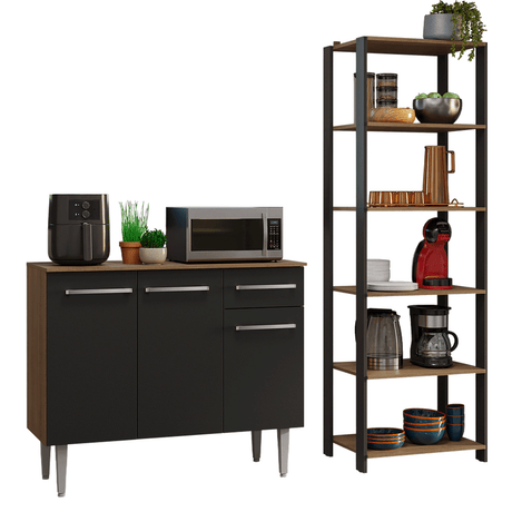Kit Bajo Mesada con Armario Madesa Emilly 64cm Marrón/B...