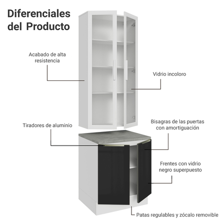 Kit Bajo Mesada con Cristalero 70 cm Madesa Lux BN 01