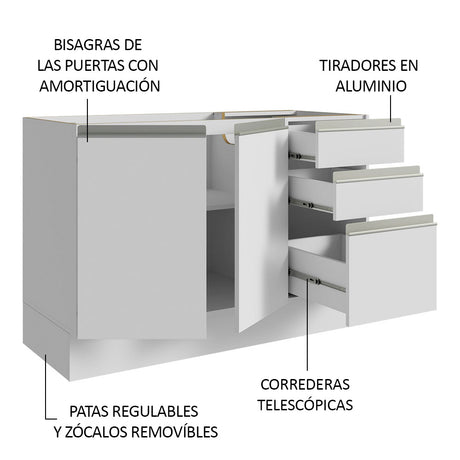 Kit Reims 60 cm con Alacena y Bajo Mesada con 3 Cajones...