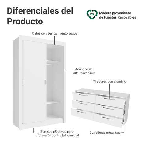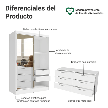 Kit Dormitorio Infantil Madesa Placard y Chifonier 6 Ca...