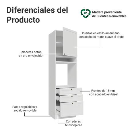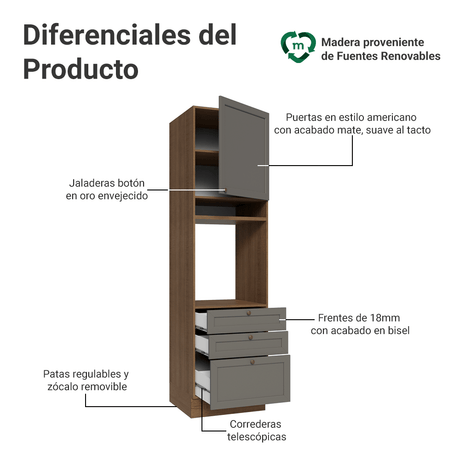 Mueble de cocina para Horno/ microondas 60 cm 1 Puerta ...