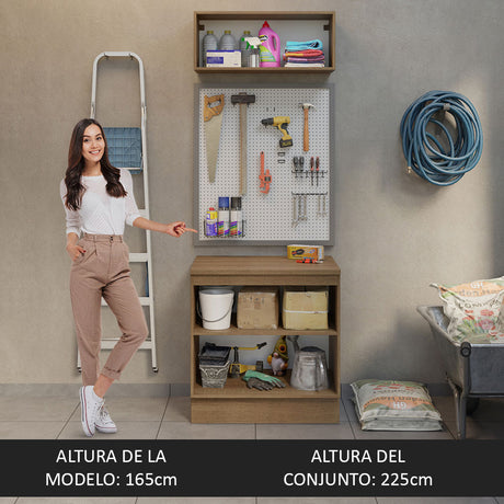Mueble Integral Multiuso Garaje 80cm Marrón/Crema
