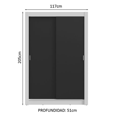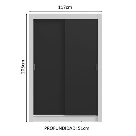 Placard 2 Puertas Corredizas 2 Cajones Blanco/Negro Viv...