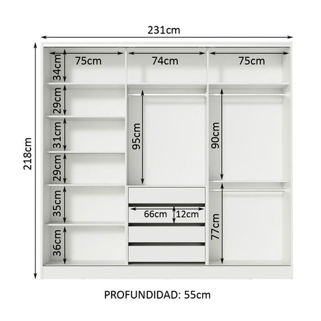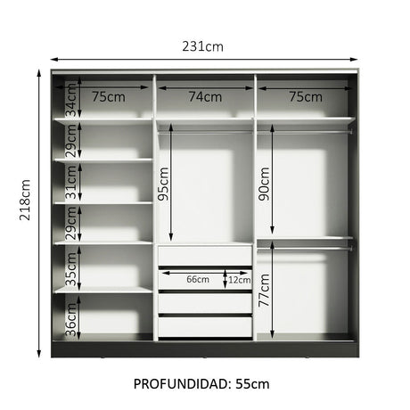 Placard Matrimonial 100% MDF Royale 3 Puertas Corrediza...
