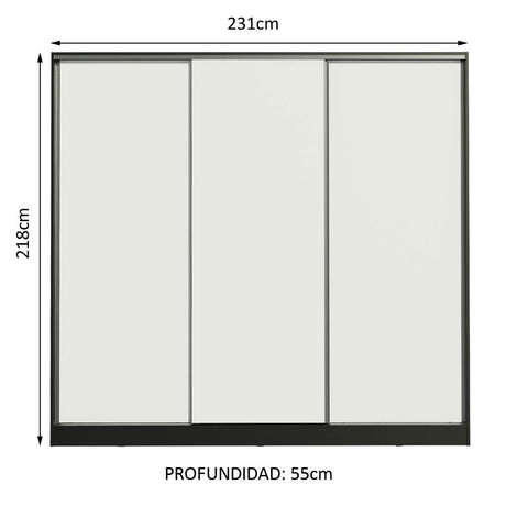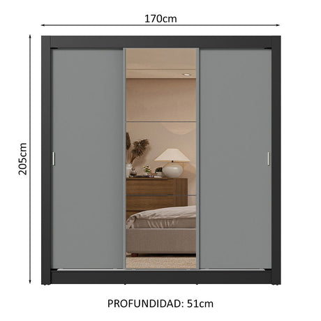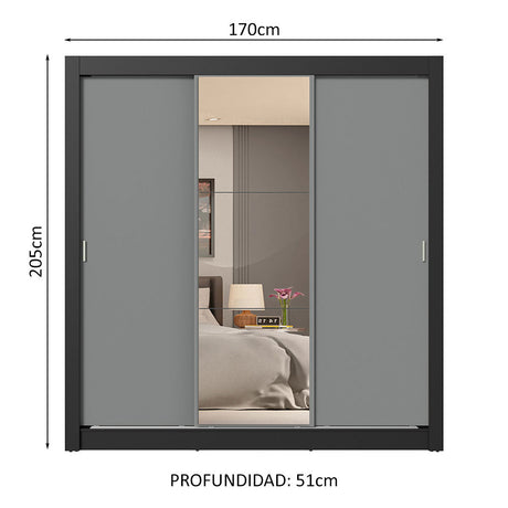 Placard Matrimonial 3 Puertas Corredizas 2 Cajones Negr...
