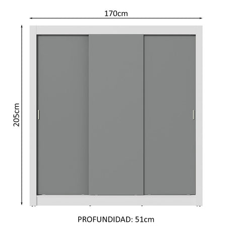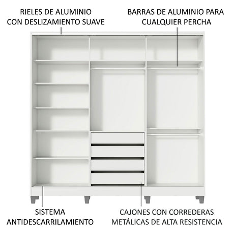 Placard Matrimonial 3 Puertas Corredizas 4 Cajones Blan...