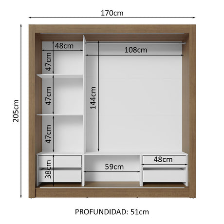 Placard Matrimonial 3 Puertas Corredizas 4 Cajones Marr...