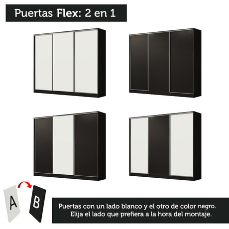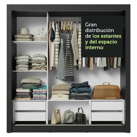 Placard Matrimonial 3 Puertas Corredizas 4 Cajones Negr...
