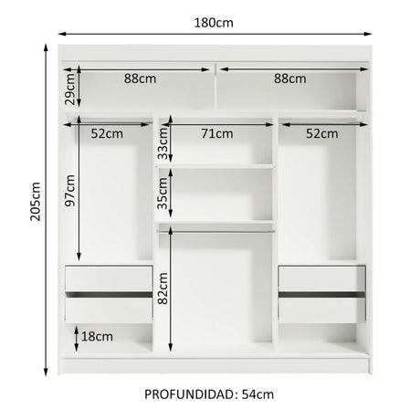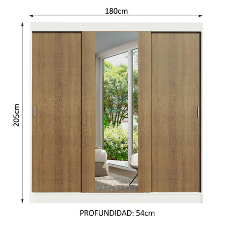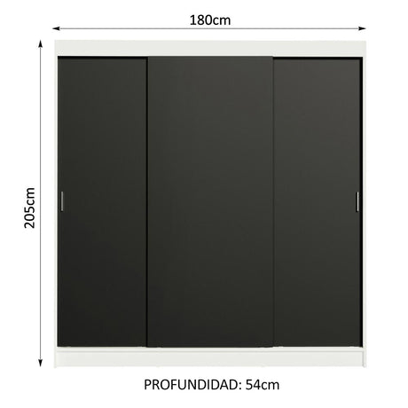 Placard Matrimonial Reno 3 Puertas Corredizas - Blanco/...