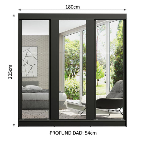 Placard Matrimonial Reno 3 Puertas Corredizas con Espej...