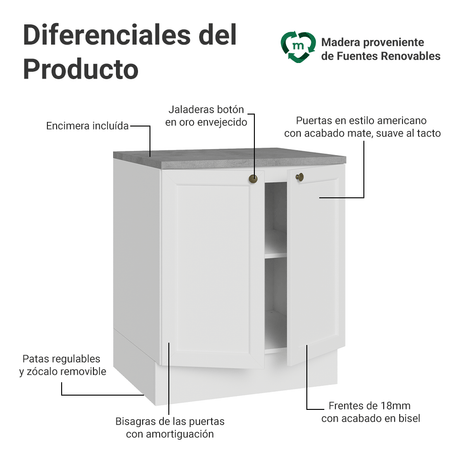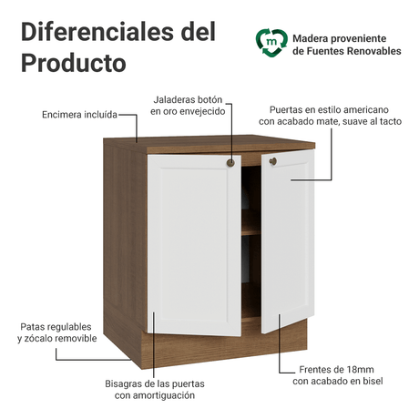 Bajo Mesada de Cocina 70 x 60 cm 2 Puertas (con Mesada)...