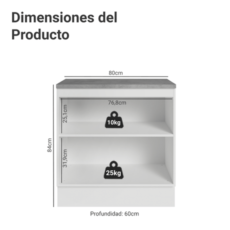 Bajo Mesada de Cocina 80 x 60 cm 2 Puertas (con Mesada)...