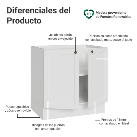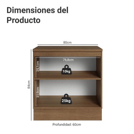 Bajo Mesada de Cocina 80 x 60 cm 2 Puertas (Sin Mesada)...