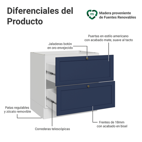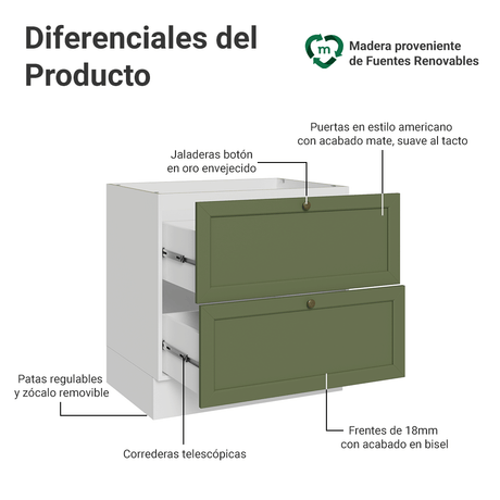Bajo Mesada de Cocina 80 x 60 cm 2 Cajones (Sin Mesada)...