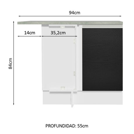 Bajo Mesada de Esquina 1 Puerta Reims Negro