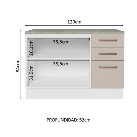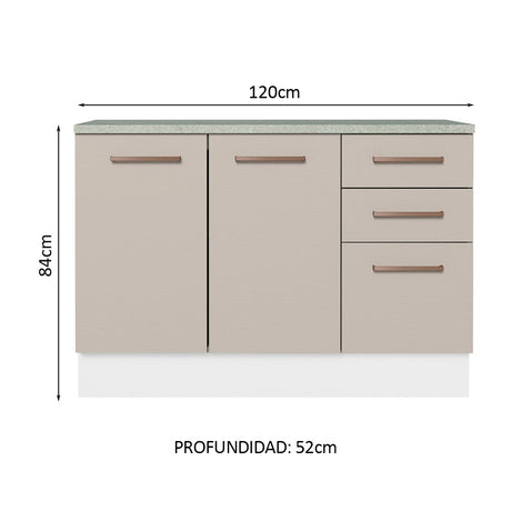 Bajo Mesada para Bacha 120 cm 2 Puertas y 3 Cajones (Co...