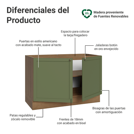 Bajo Mesada para Bacha 120 cm 2 Puertas 3 Cajones (Con ...