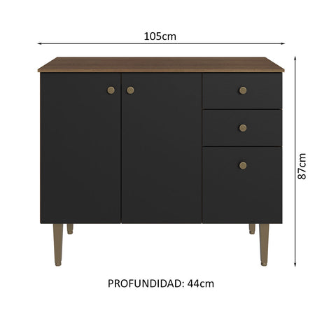 Bajo Mesada para Bacha 2 Puertas y 1 Cajón Negro Reims
