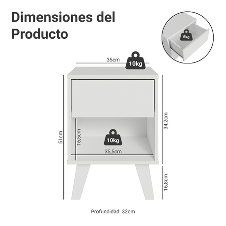 Cajonera para Baño Blanco con 3 Cajones y Ruedas Madesa