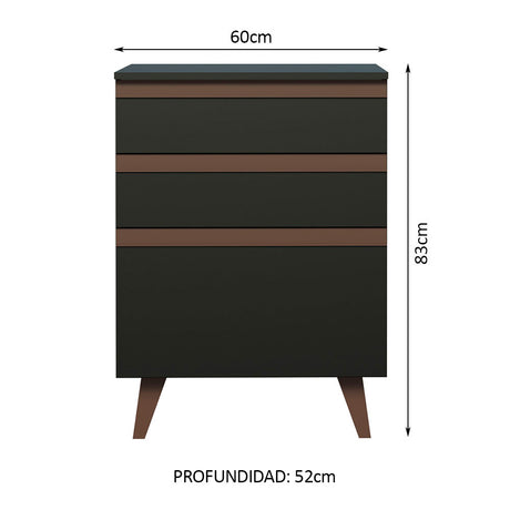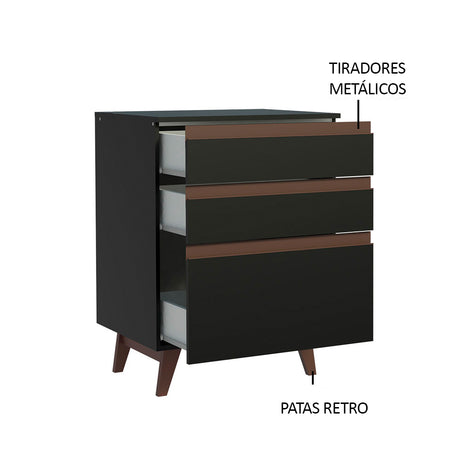 Bajo Mesada Reims 60 cm 3 Cajones Negro