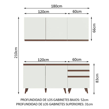 Cocina Compacta 180cm Blanco/Marrón Diamante 86