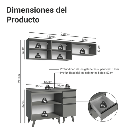 Cocina compacta 200cm Gris Nice Madesa 01XA
