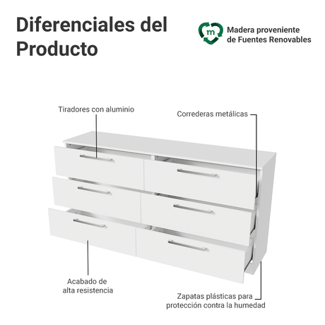 Chifonier Madesa Infantil Con 6 Cajones Para Dormitorio...