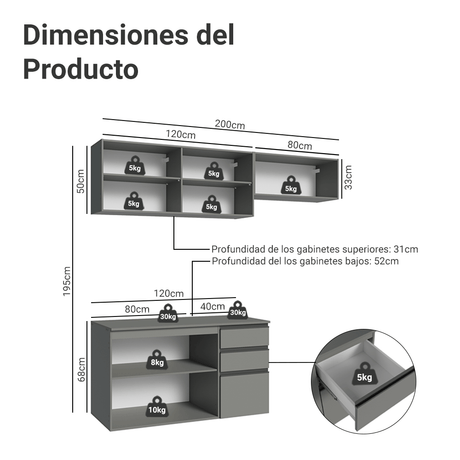 Cocina compacta Flotante 200cm Gris Nice Madesa XA05