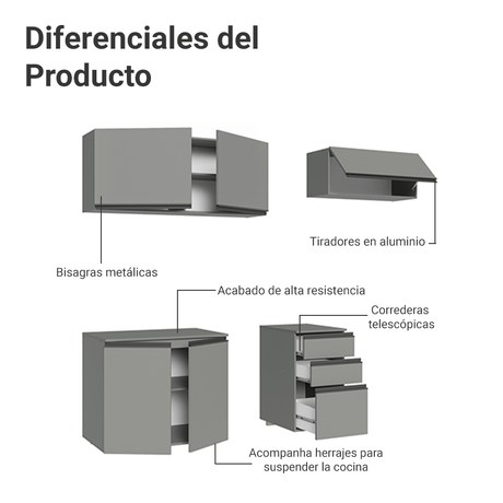 Cocina compacta Flotante 200cm Gris Nice Madesa 02XA