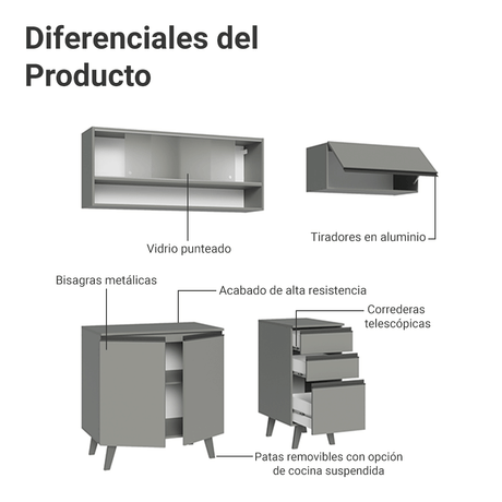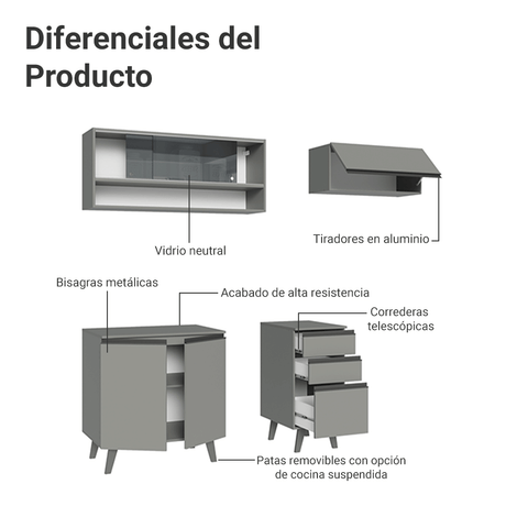 Cocina compacta Flotante 200cm Gris Nice Madesa 04XA