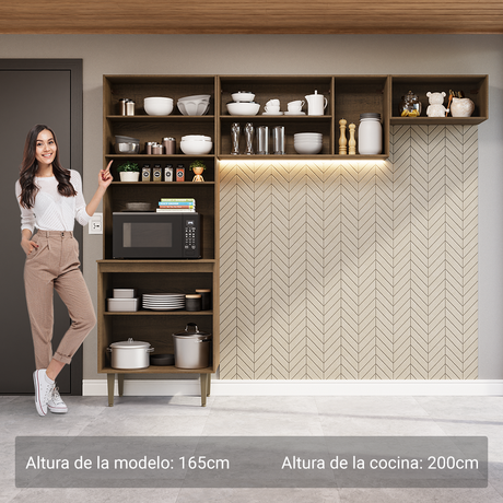 Cocina compacta 235cm Marrón Gourmet Madesa XC03