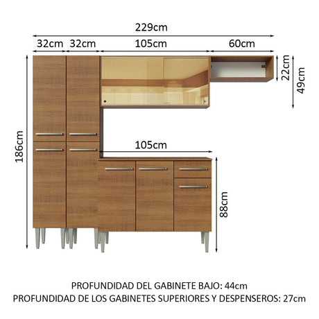 Combo completo de Cocina 229cm Emilly Madesa 09 - Marró...