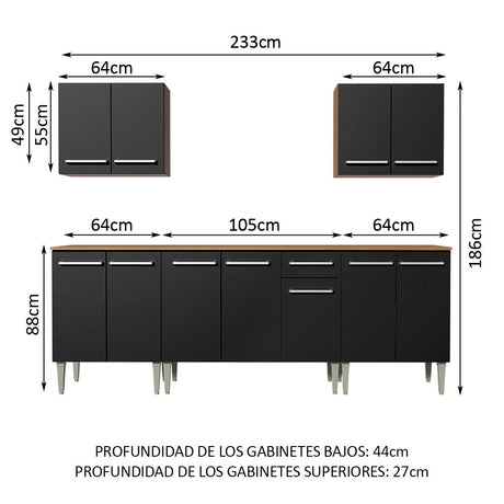 Combo completo de Cocina 233cm Marrón/Negro Emilly King...