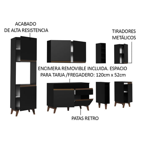 Combo completo de Cocina 235cm Negro Reims Madesa 02
