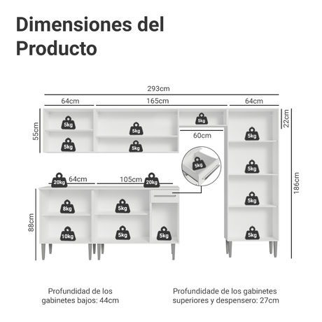 - AgotadoCombo completo de Cocina 293cm Blanco Emilly Madesa 09 6x de $116.831,67 sin interés$700.98999$876.23900Precio unitario /Agotado