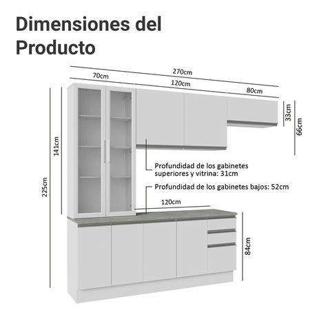 - AgotadoCombo completo de Cocina con Cristalero 270 cm Madesa G... 6x de $224.320,00 sin interés$1.345.91999$1.682.39900Precio unitario /Agotado