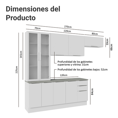 - AgotadoCombo completo de Cocina con Cristalero 270 cm Madesa S... 6x de $216.530,00 sin interés$1.299.17999$1.623.97900Precio unitario /Agotado