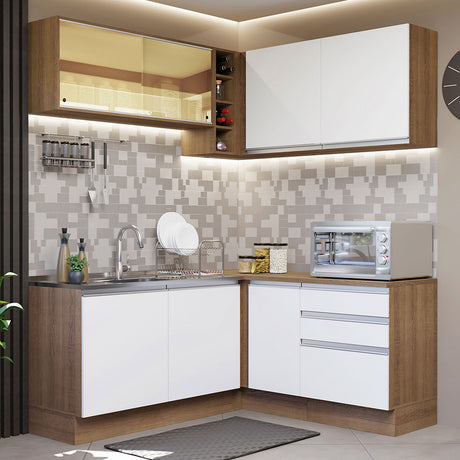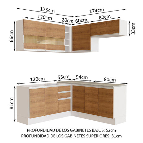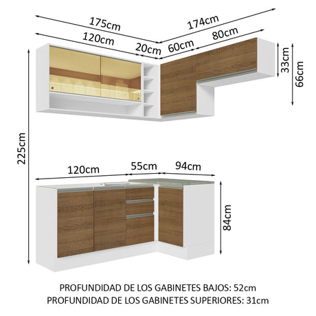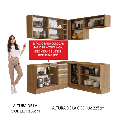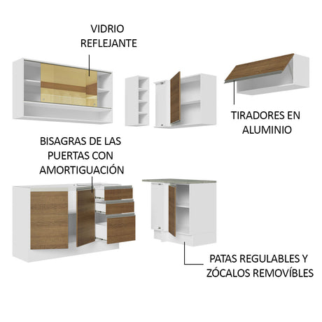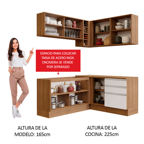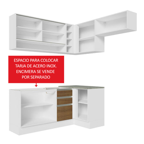 Combo completo de Cocina Esquinera 329cm Marrón/Blanco ...