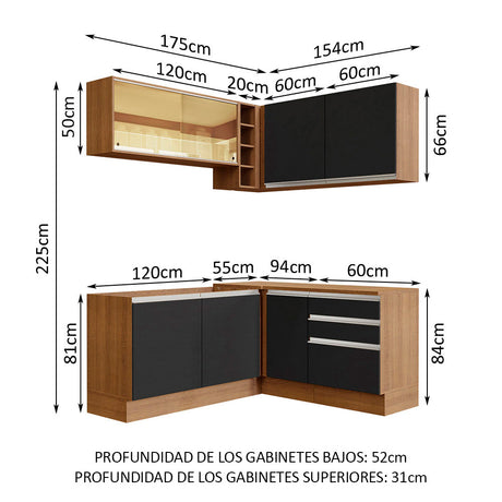Combo completo de Cocina Esquinera 329cm Marrón Glamy M...