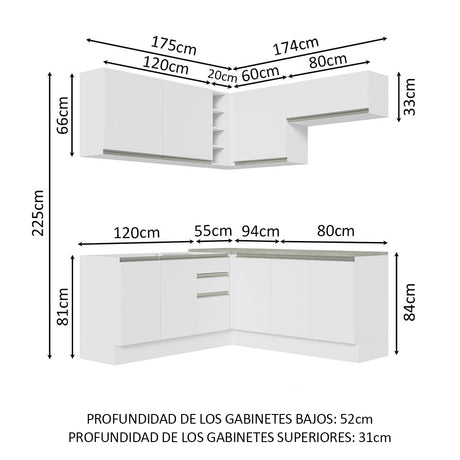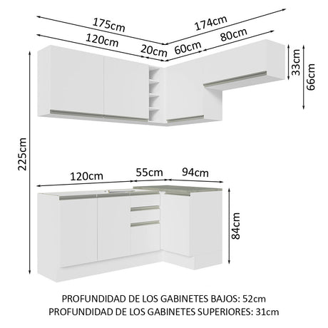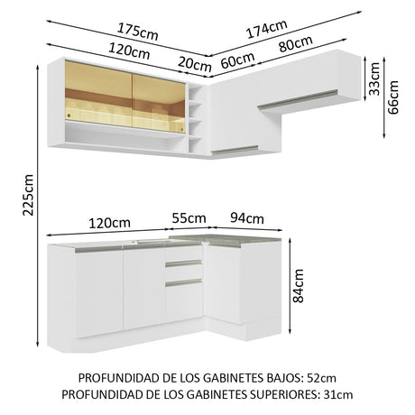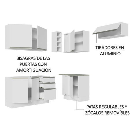 Combo completo de Cocina Esquinera 349cm Blanco Glamy M...