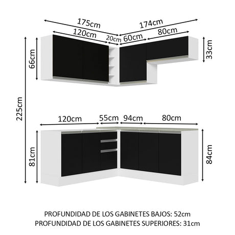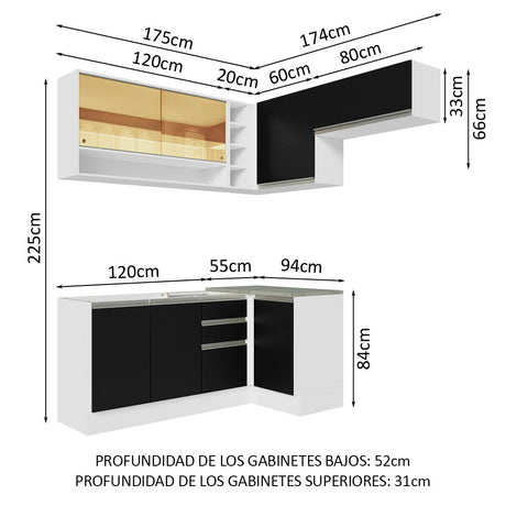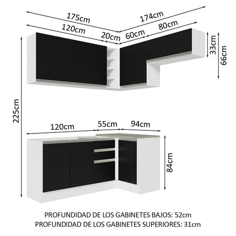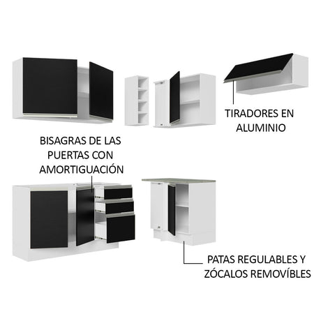 Combo completo de Cocina Esquinera 349cm Blanco/Negro G...