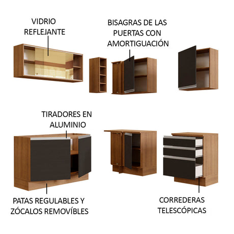 Combo completo de Cocina Esquinera 349cm Marrón Glamy M...
