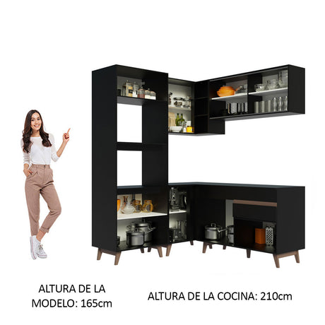 Combo completo de Cocina Esquinera 332cm Negro Reims 01