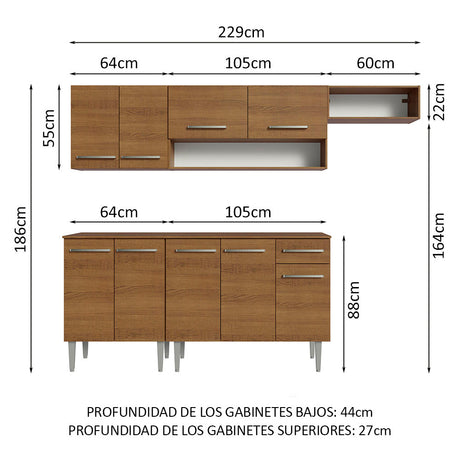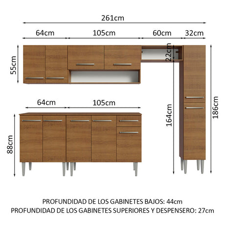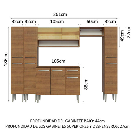 Combo completo de Cocina Madesa Emilly 261cm Marrón 04
