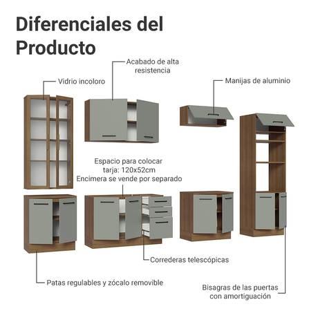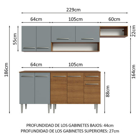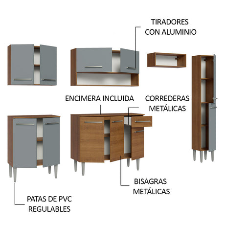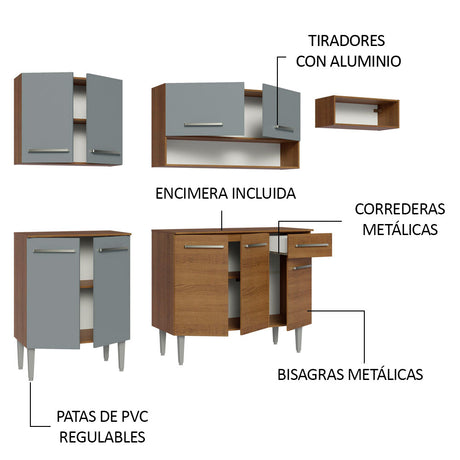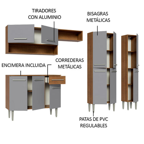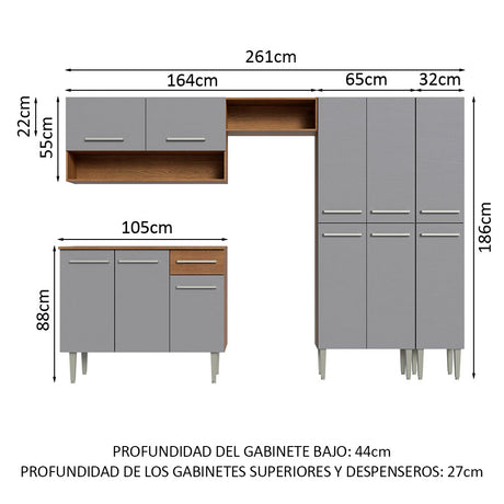 Combo completo de Cocina Madesa Emilly 261cm Marrón/Gri...