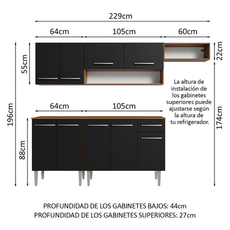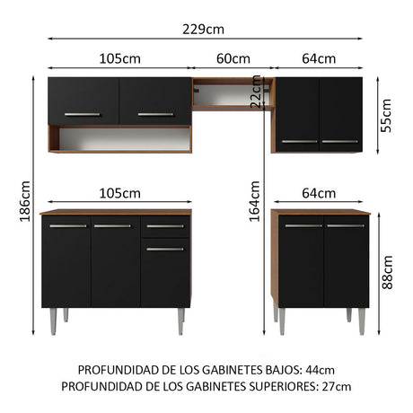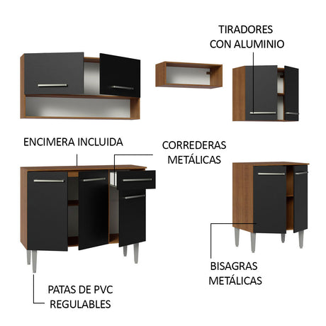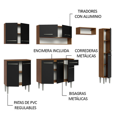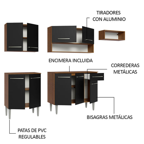 Combo completo de Cocina Madesa Emilly 229cm Marrón/Neg...